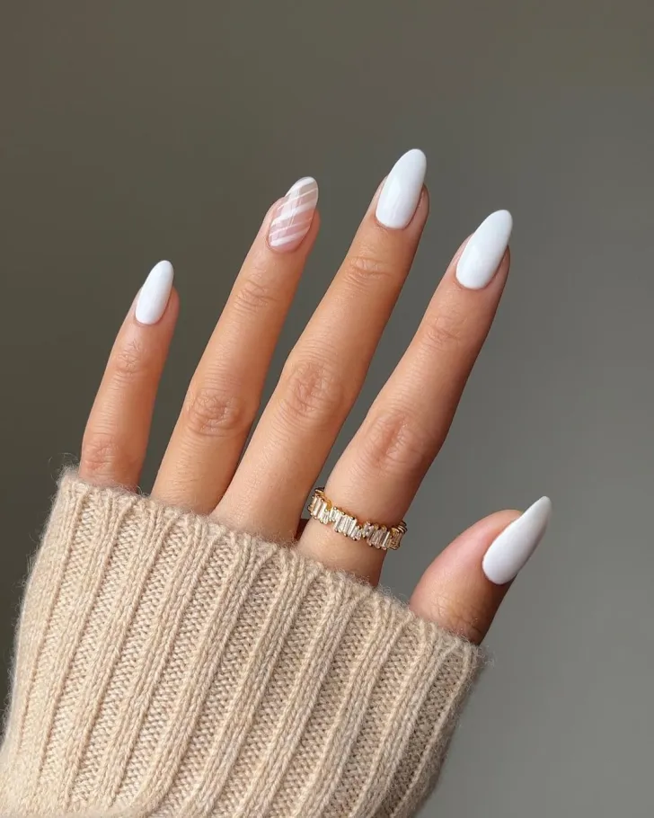 11. Milky White Almond Nails