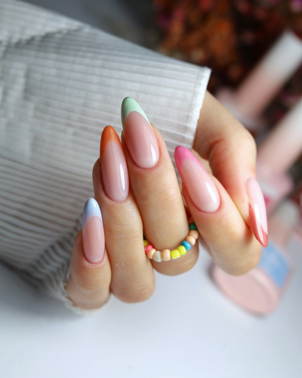 6. Pastel Rainbow Almond Nails