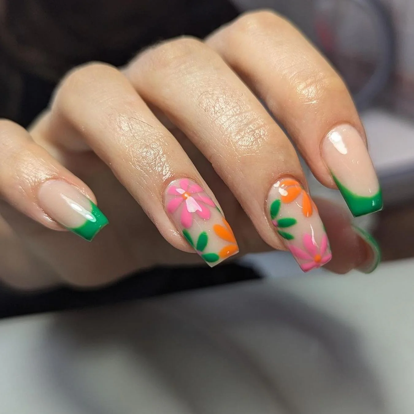 Neon nails scream confidence, energy, and fun. Bright pinks, oranges, yellows, and greens look incredible on acrylic nails, which hold the colors vividly without fading.
